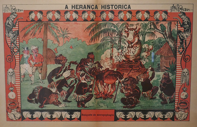 No final do século XIX, o regime monárquico em Portugal era acusado pelos republicanos de descurar a defesa do "Império Colonial Português", face ao apetite de outras potências, como a Inglaterra, a Alemanha ou a Bélgica. Muito eram os que advogavam a venda a retalho das colónias para pagar dividas externas e diminuir o "esforço" financeiro e militar de as manter. Bordalo, atacou em 1900 o governo monárquico, representando os seus membros como uma tribo indigena africana, em rituais antropofágicos. O canibalismo era um estereotipo dos africanos que teimava em perdurar. "A Herança Histórica", in A Paródia, 14/03/1900